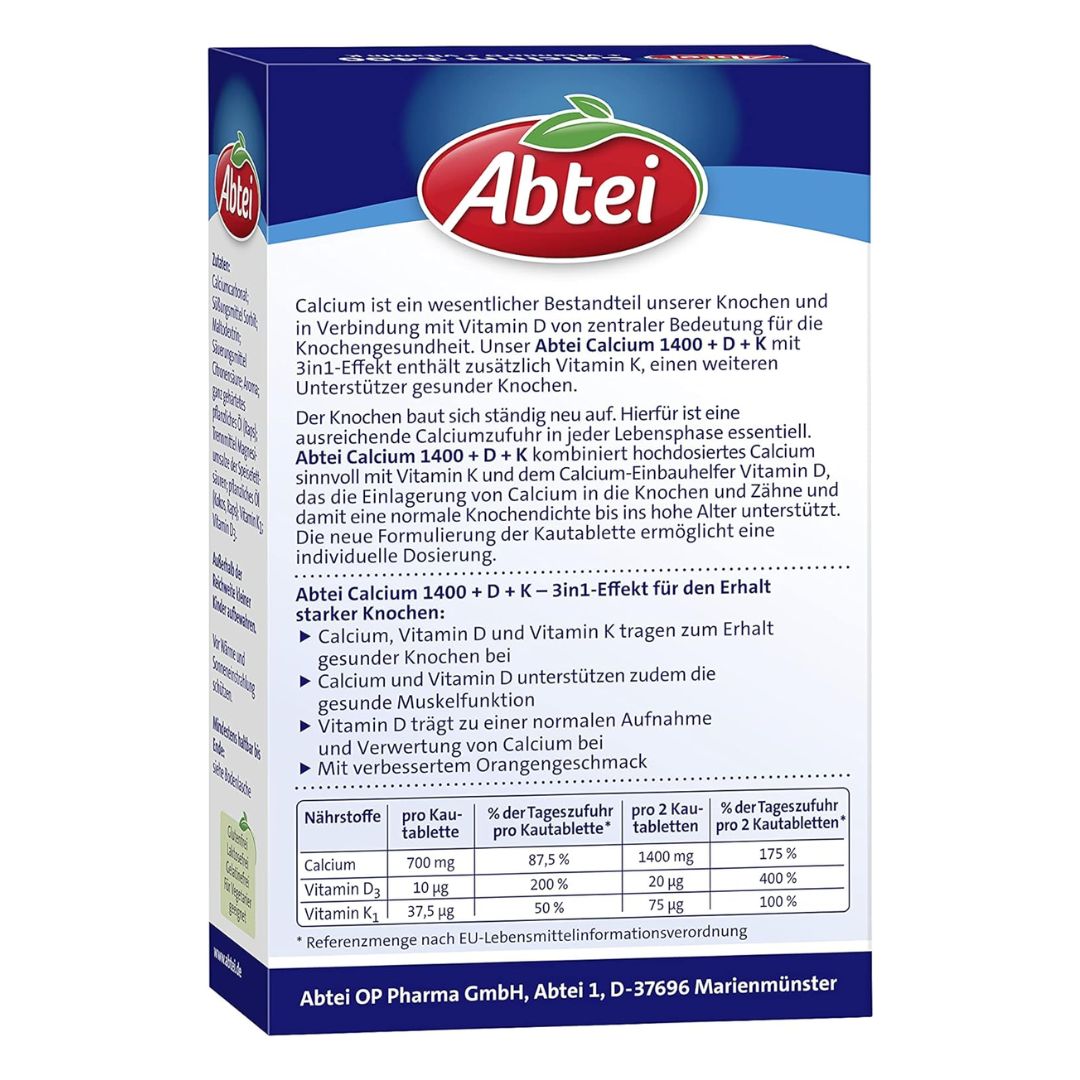 Abtei Calcium 1400 + Vitamin D + Vitamin K 30 chewable tab -