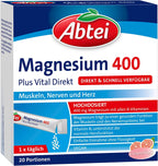 The granules with 400 mg high-dose magnesium can be taken at any time without liquid and provide the nutrients quickly and easily. Abtei Magnesium 400 Plus Vital Direkt with a refreshing grapefruit flavor is particularly practical when you are out and about or when you have difficulty taking tablets.