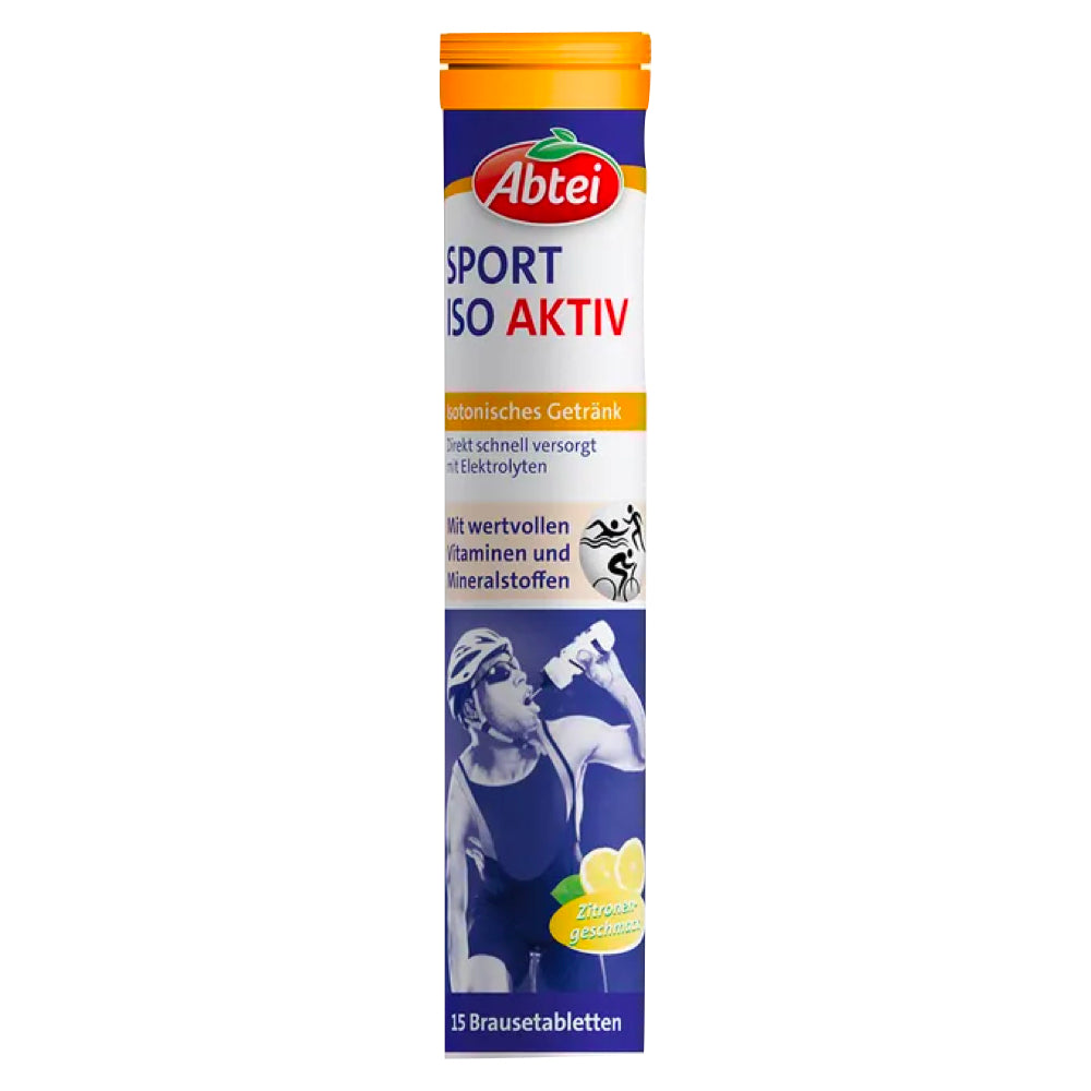 Abtei Sport Iso Active Vitamins + Minerals quickly supplied with vital nutrients. Dietary supplements with vitamins and minerals. With sweeteners.