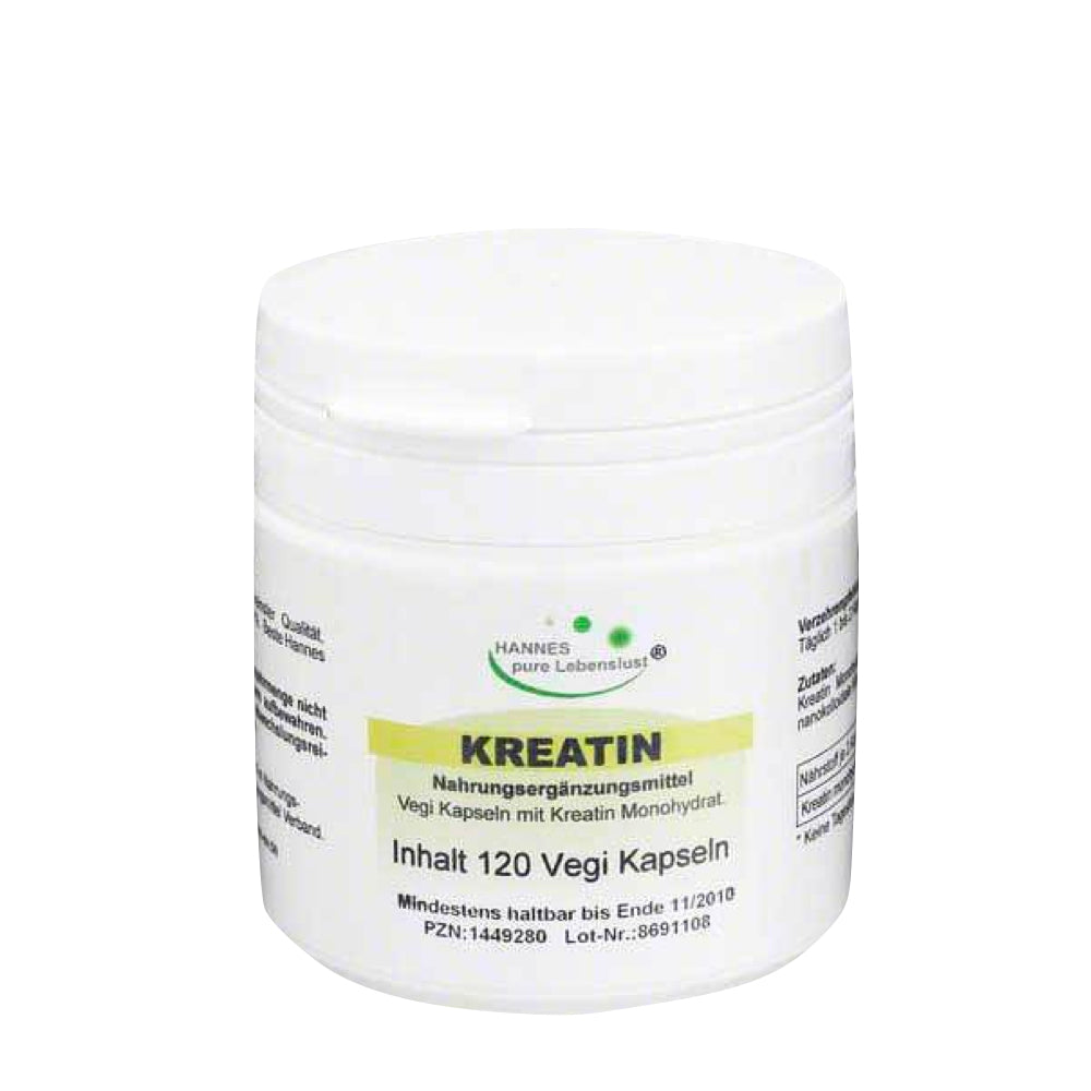 • Creatine Vegi Capsules 120 cap from Hannes pure Lebenslust is a dietary supplement without genetic modification, without added sugar, without atrificual preservatives and without lactose.