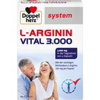 In the case of an insufficient supply of L-arginine via the diet, it can be supplemented specifically by the Doppelherz L-Arginin Vital 3,000. The dietary supplement Doppelherz System Collection: L-arginine Vital 3,000 provides 3000 mg L-arginine daily - taking 4 capsules daily.