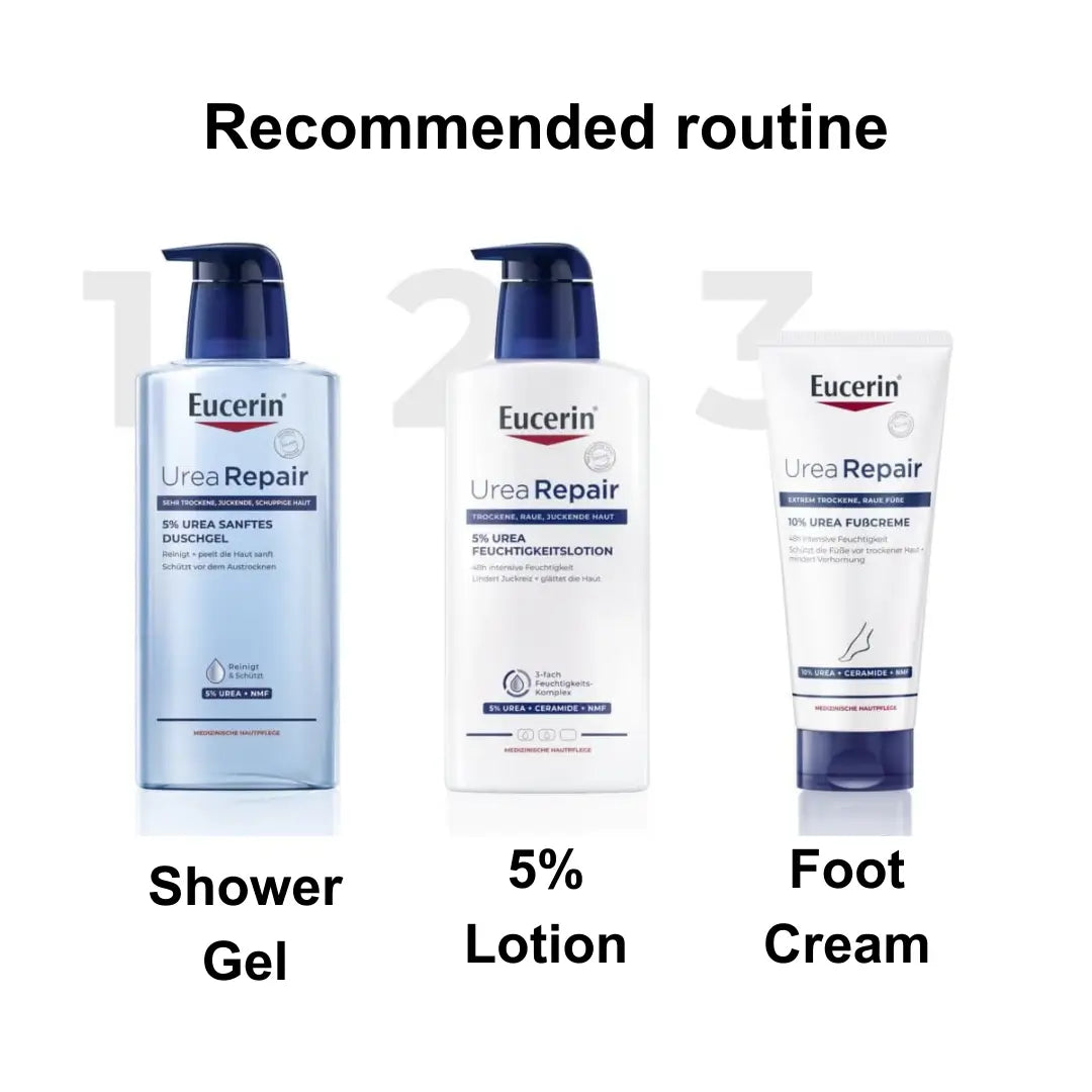 The Eucerin® UreaRepair Lotion 5% is a fast-absorbing water-in-oil emulsion that immediately relieves the signs of very dry, rough and tense skin and protects the skin for 48 hours from dryness. Even very dry skin becomes smooth and supple again.