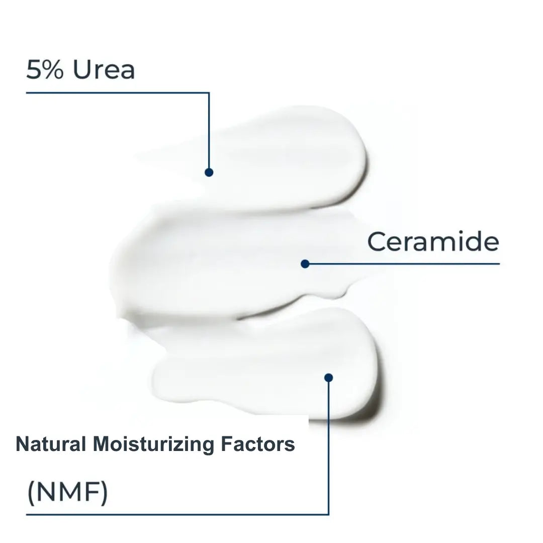 • With 5% urea + ceramides & NMF (natural moisturizing factors)