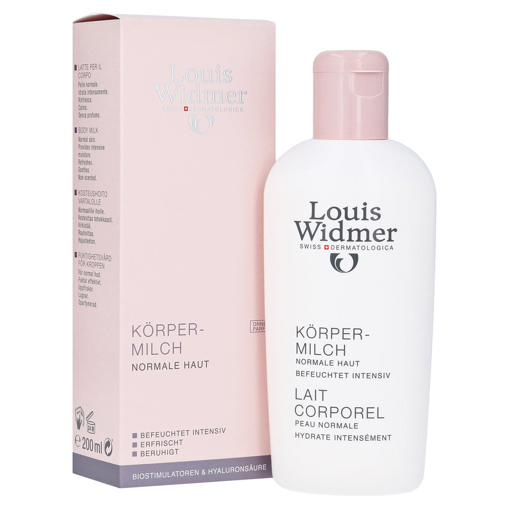 Louis Widmer Body Milk without perfume – Instantly absorbed, makes the skin supple and soft. Moisturises, soothes and cares for the skin. For normal skin.