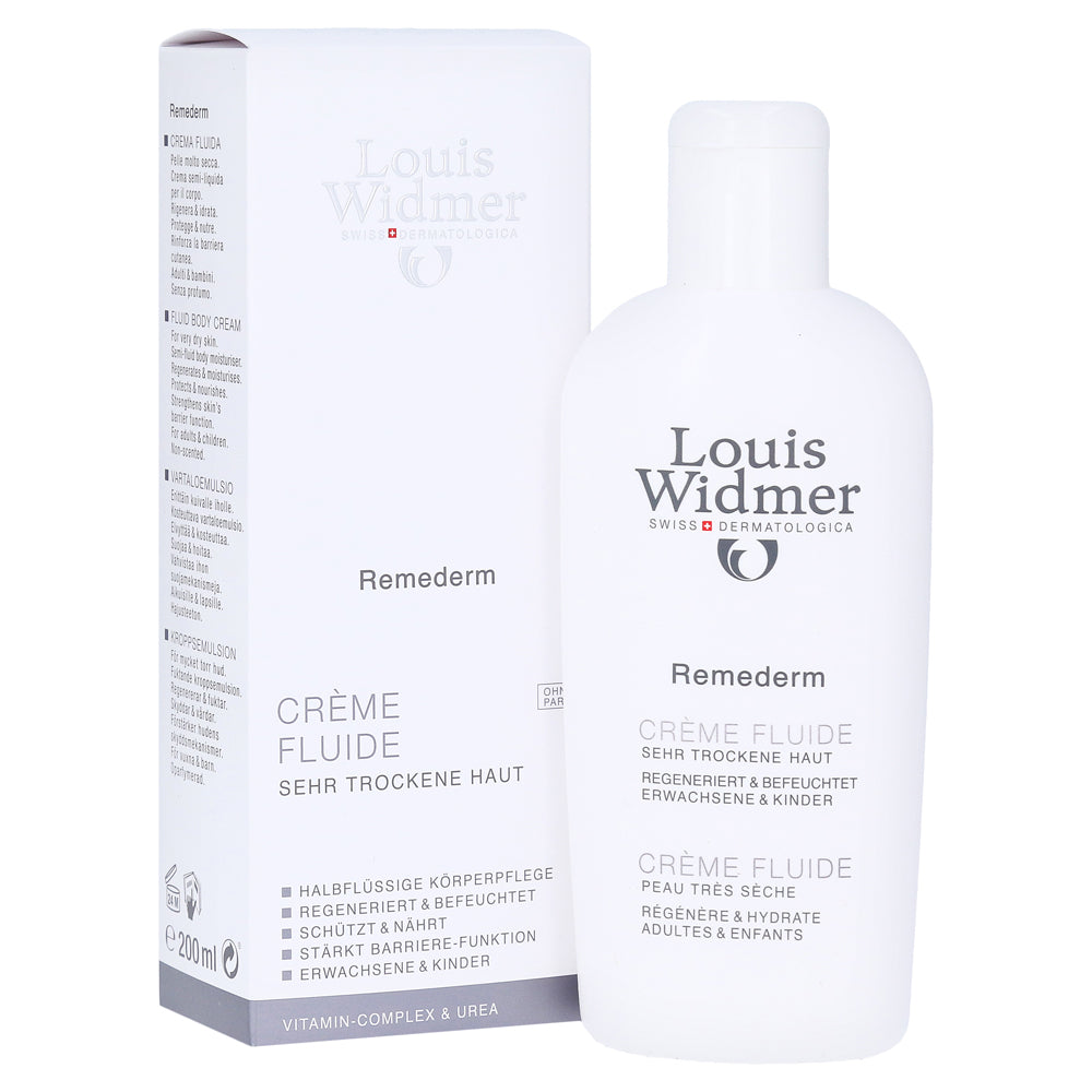 Louis Widmer Remederm Fluide Body Cream Unscented – Ideal for use on large areas of skin. Strengthens the skin's barrier function and provides effective protection. For very dry skin.
