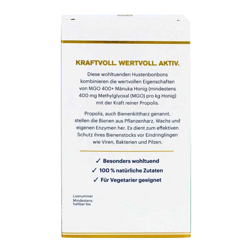 Manuka Honey Lozenges combine the valuable properties of active New Zealand Manuka Honey MGO™ 400+ with the power of pure propolis. A benefactor at any time of the year - especially when it "scratches your throat"!