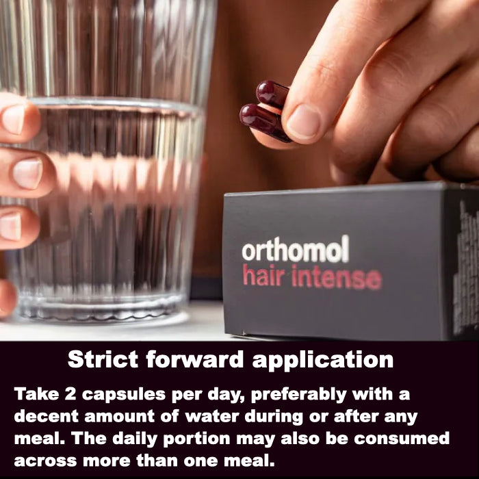 Orthomol Hair Intense is available in capsule form. You may choose between a monthly pack with 60 capsules and a 3-month pack with 180 capsules.