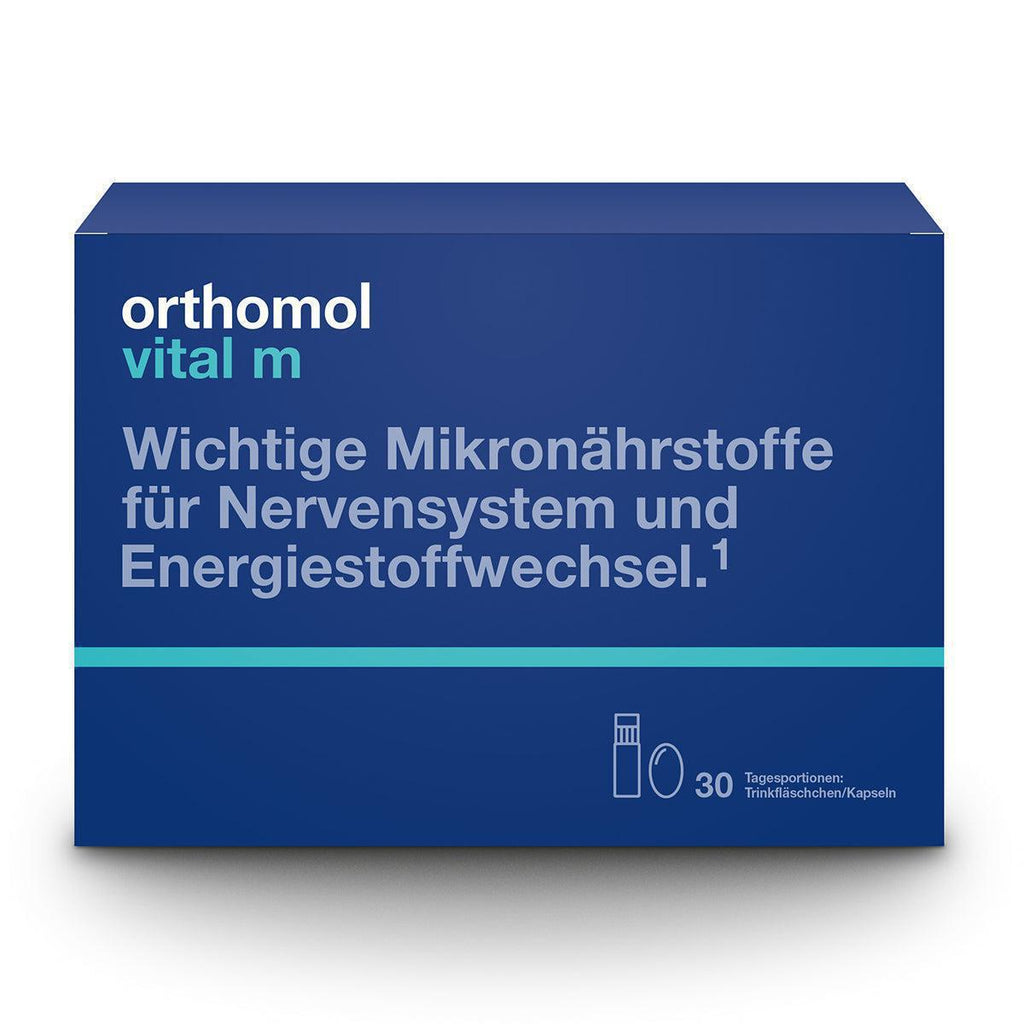 Orthomol Vital m is a nutritional supplement for men with important micronutrients. It contains micronutrients for the nervous system and the energy-yielding metabolism. It supplies magnesium and B vitamins which could be suitable when experiencing tiredness and fatigue. With omega-3 fatty acids.