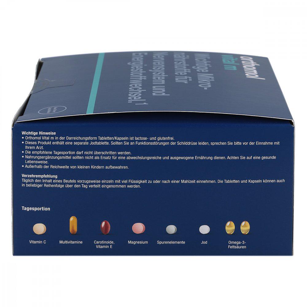 Orthomol Vital m is a nutritional supplement for men with important micronutrients. It contains micronutrients for the nervous system and the energy-yielding metabolism. It supplies magnesium and B vitamins which could be suitable when experiencing tiredness and fatigue. With omega-3 fatty acids.