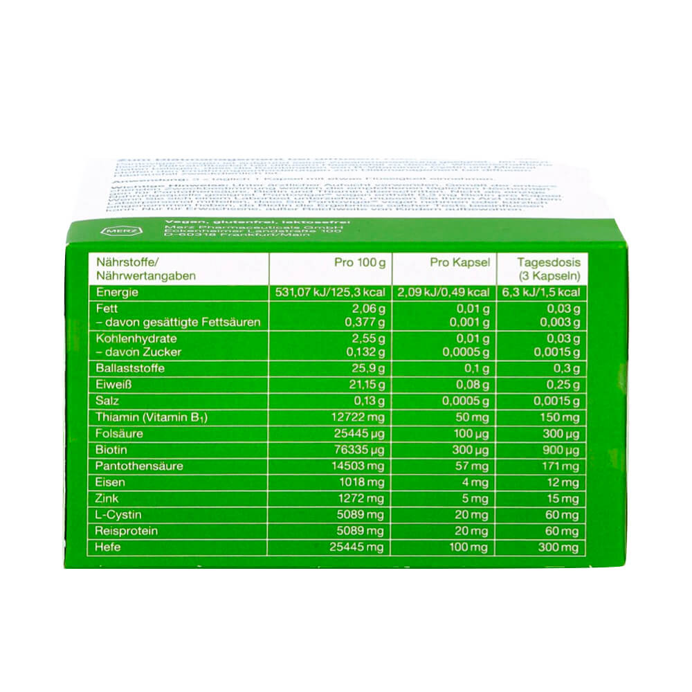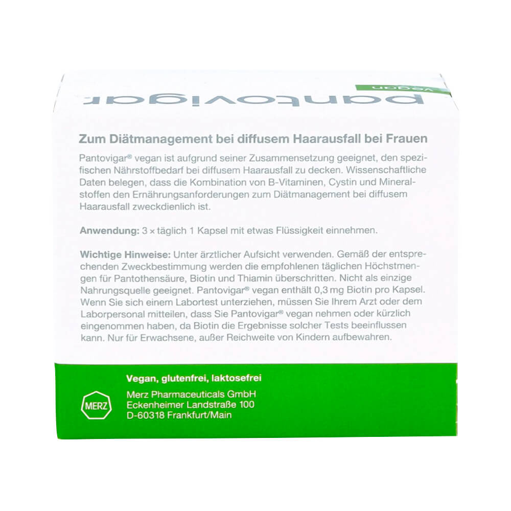 The composition is supplemented by selected minerals. Due to its composition, Pantovigar® vegan is suitable for covering the specific nutritional requirements of diffuse hair loss.