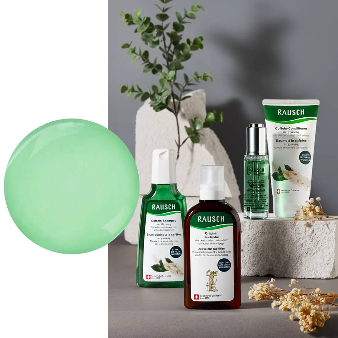 A relief for hair loss, Rausch Ginseng Caffeine Shampoo stimulates and strengthens the hair roots during washing, while also leaving the scalp feeling pleasantly refreshed.