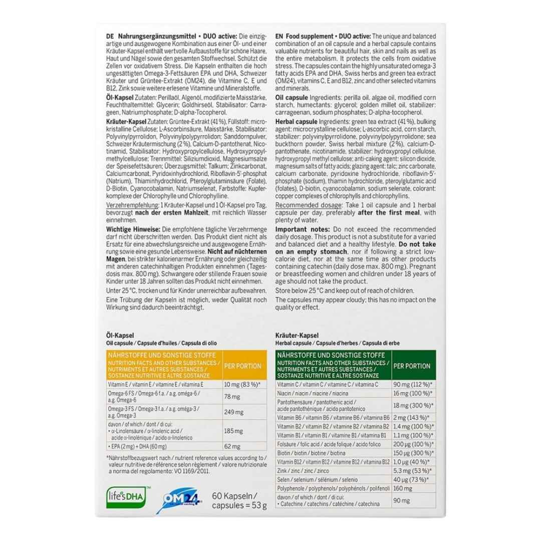 The DUO Active formula - a combination of oil and herbal capsules - contains valuable building materials for beautiful hair, skin and nails, which also supports the entire metabolism.