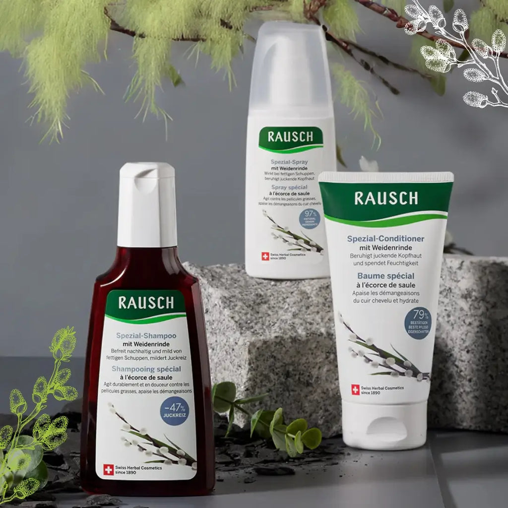 Rausch Willow Bark Treatment Shampoo for oily dandruff, redness and itchy scalp. It provides lasting relief and prevent further formation of dandruff.