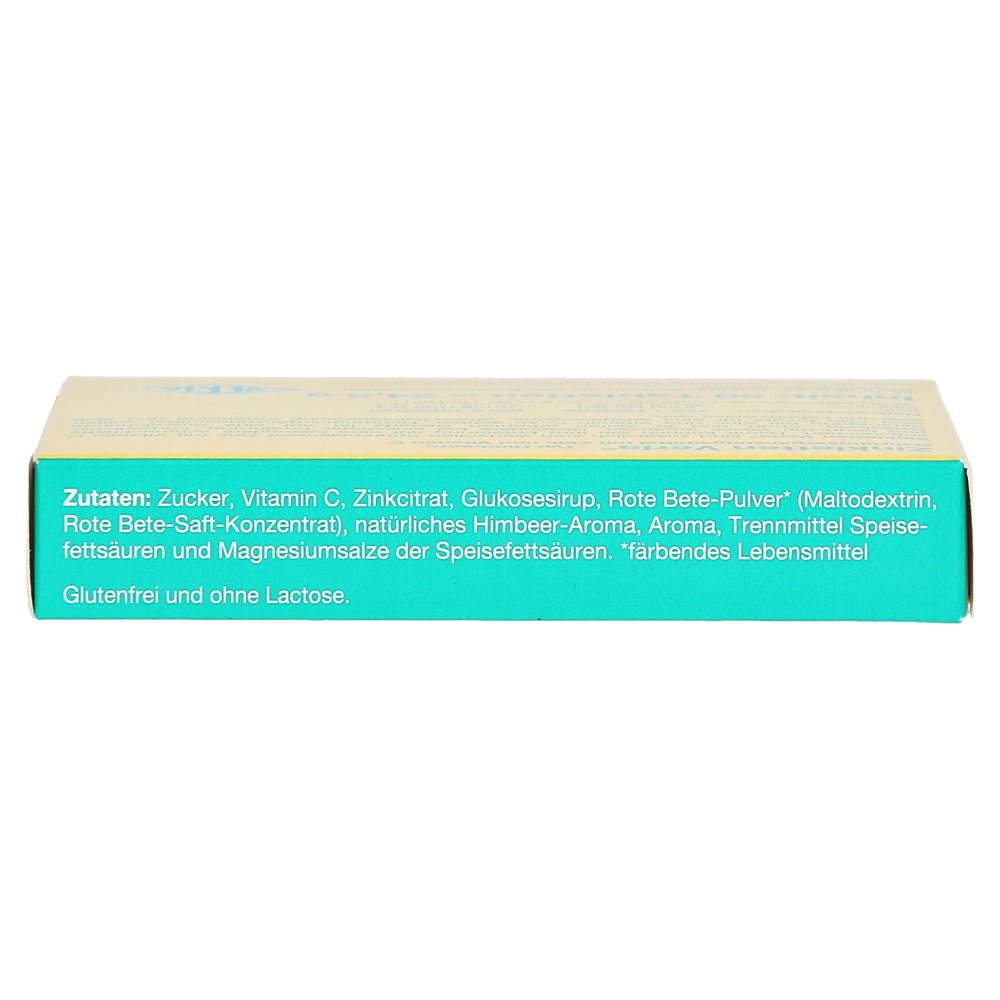 Verla Zinkletten Raspberry Lozenges has a combination of zinc with vitamin C for a healthy immune system. Zinc is particularly important for a strong immune system, healthy skin and good wound healing. Similar to zinc, vitamin C is also necessary for the body's defenses, for healthy skin and wound healing, and as an important antioxidant in the organism.